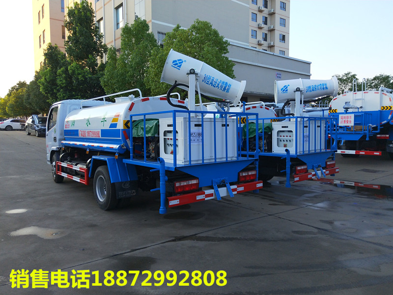 隨底盤(pán)選裝駕駛室;品名:水,密度:1000千克/立方米,有效容積4.09立方米,罐體尺寸(長(zhǎng)×寬×高)(mm):3400×1600×1100;ABS吸程≧7米,灑水寬度≧14-16米,射程≧25-30米,引水時(shí)間<5min,流量60m3/h。前沖(噴)、后灑、帶側(cè)噴(花灑)、帶后工作平臺(tái)、平臺(tái)上安裝綠化灑水高炮(炮噴射形狀可調(diào)節(jié):直沖、大雨、中雨、毛毛雨、霧狀、可連續(xù)調(diào)節(jié),360°旋轉(zhuǎn)),配消防接口,自流閥,濾網(wǎng),帶自吸自排功能。配備大功率專用灑水泵,泵可自吸自排,安裝過(guò)濾網(wǎng),帶消防接口,可通過(guò)消防栓進(jìn)水,帶自流閥,隨車選裝20米綠化卷盤(pán),可噴灑農(nóng)藥,罐體金屬漆。罐體有橢圓和方圓罐兩種,可根據(jù)用戶的要求定做 發(fā)動(dòng)機(jī)可選,云內(nèi),朝柴 ,錫柴,全柴