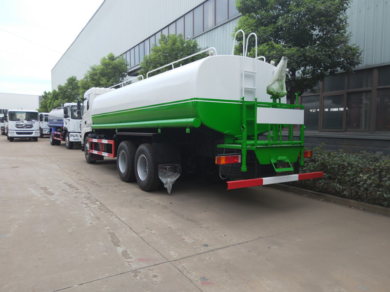 隨底盤選裝駕駛室;選裝側噴及農藥炮;品名:水;密度:1000千克/立方米;有效容積:15.6立方米;罐體外形尺寸(長×長軸×短軸)(mm):6600×2300×1500;ABS吸程≧7米,灑水寬度≧14-16米,射程≧25-30米,引水時間<5min,流量60m3/h。前沖(噴)、后灑、帶側噴(花灑)、帶后工作平臺、平臺上安裝綠化灑水高炮(炮噴射形狀可調節:直沖、大雨、中雨、毛毛雨、霧狀、可連續調節,360°旋轉),配消防接口,自流閥,濾網,帶自吸自排功能。配備大功率專用灑水泵,泵可自吸自排,安裝過濾網,帶消防接口,可通過消防栓進水,帶自流閥,隨車選裝20米綠化卷盤,可噴灑農藥,罐體金屬漆。罐體有橢圓和方圓罐兩種,可根據用戶的要求定做。