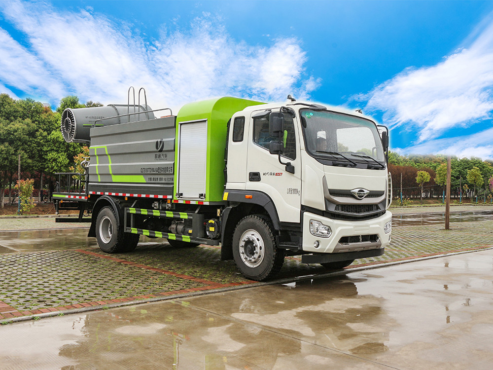 福田 ES7 12 方灑水車-12方罐抑塵車產品簡述 抑塵車又稱為綠化噴灑車、多功能灑水車、園林綠化灑水車。抑 塵車適合于各種路面沖洗,樹木、綠化帶、草坪綠化,道路、廠礦企業 施工建設,高空建筑沖洗。抑塵也可以作為運水車使用,最常見的車 型有綠化噴灑車、多功能灑水車、綠化灑水車幾大類。 我公司產品標配前噴(鴨嘴)、后沖、后灑、側噴、后置式工作 平臺,平臺上配置綠化水炮(可 360°旋轉,既可以調成柱狀,也可 以調成霧狀,更可以調成直沖狀、大雨、中雨、小雨、毛毛雨),配 備優質大功率專用灑水泵(可自吸自排,可從河里或池塘抽水到罐體), 取力器,雜物過濾網,消防接口,自流球閥系統、取力器、球閥、濾網 均為國家標準產品,主管道加粗,法蘭墊、法蘭盤加厚,大通徑球閥。 整體具備性能優良安全可靠、效率高、流量大、維修方便等特點。