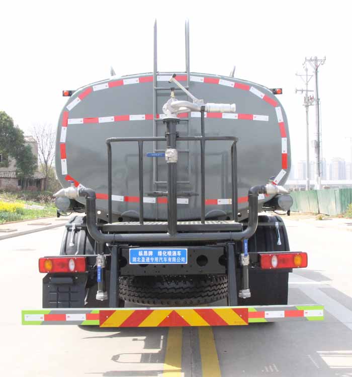 東風專底12方灑水車品標配前噴(鴨嘴)、后沖、后灑、側噴、后置式工作 平臺,平臺上配置綠化水炮(可 360°旋轉,既可以調成柱狀,也可 以調成霧狀,更可以調成直沖狀、大雨、中雨、小雨、毛毛雨),配 備優質大功率專用灑水泵(可自吸自排,可從河里或池塘抽水到罐體), 取力器,雜物過濾網,消防接口,自流球閥系統、取力器、球閥、濾網 均為國家標準產品,主管道加粗,法蘭墊、法蘭盤加厚,大通徑球閥。 整體具備性能優良安全可靠、效率高、流量大、維修方便等特點