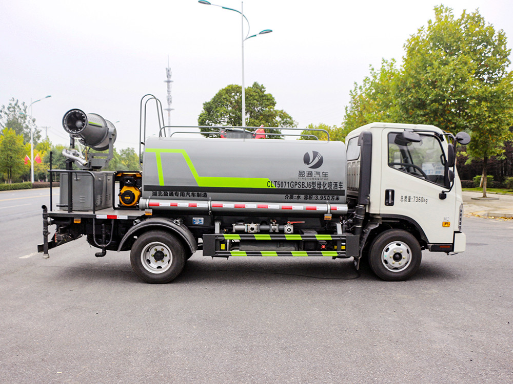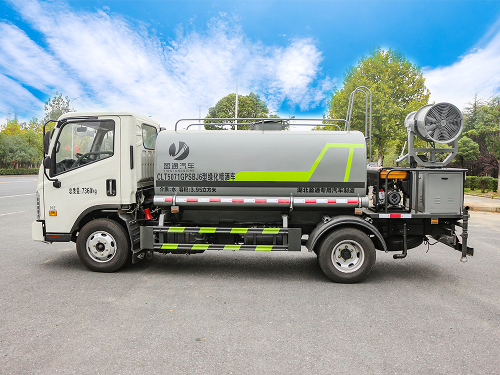 福田5方藍牌灑水車產品標配前噴(鴨嘴)、后沖、后灑、側噴、后置式工作 平臺,平臺上配置綠化水炮(可 360°旋轉,既可以調成柱狀,也可 以調成霧狀,更可以調成直沖狀、大雨、中雨、小雨、毛毛雨),配 備優質大功率專用灑水泵(可自吸自排,可從河里或池塘抽水到罐體), 取力器,雜物過濾網,消防接口,自流球閥系統、取力器、球閥、濾網 均為國家標準產品,主管道加粗,法蘭墊、法蘭盤加厚,大通徑球閥。 整體具備性能優良安全可靠、效率高、流量大、維修方便等特點