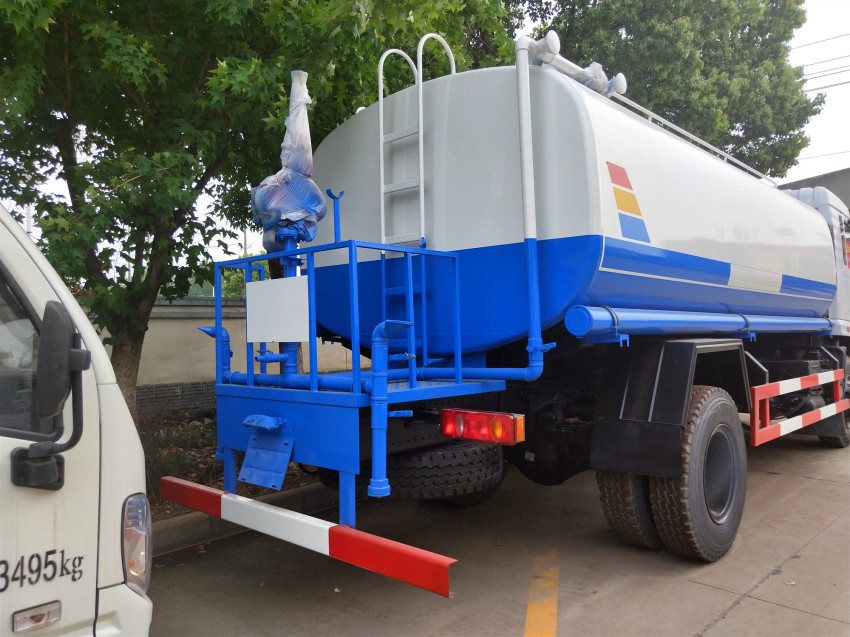 罐體容積:12立方,罐體采用武鋼碳鋼國標標準板材制作,灑水車專用泵(威龍泵60/90),前沖(噴),后灑,帶側噴(花灑),帶后工作平臺,平臺上裝綠化灑水高炮(炮噴射形狀可調節(jié):直沖,大雨,中雨,毛毛雨,霧態(tài),可連續(xù)調節(jié),360度旋轉),配消防接口,自流閥,濾網,帶自吸自排功能,標配2根水管,可選裝霧炮,其余廠家標配。