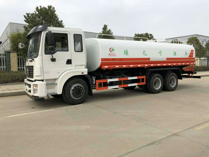采用國標武鋼碳鋼板材制作,罐體實際容積20方,帶前沖(噴)、后灑、帶側噴(花灑),帶后工作平臺,平臺上安裝鋼制芯專用大功率綠化灑水高炮(炮有直流狀、大雨、毛毛雨、霧狀可調節,可噴灑農藥),配備大功率專用灑水泵,帶消防接頭,帶自流閥,帶自吸自排功能。同時可以用于臨時應急消防灑水,每輛灑水車都配備消防專用接口。由發動機帶動變速箱,變速箱上安裝的取力器帶動灑水泵,灑水泵產生主要動力,將罐體內部的液體通過管網噴灑出去。自吸高度:≤7m,灑水寬度:≥20m,最大射程:≥28m;可調節成柱狀,射程≥28m;也可調節成霧狀,射程≥15m。前噴后灑,前裝有鴨形噴嘴或圓頭沖嘴,后面裝有圓柱開灑水噴嘴或蓮蓬頭噴嘴,后部有一工作平臺,裝配有高壓水炮。后部還可裝8個噴嘴(選裝)噴水器一般用于沖洗街道。可選配藥盤、打藥機。也可加裝藥盤、藥泵、罐內防腐防銹、多方位進出水接頭、電磁閥、氣動閥等先進設施,以滿足不同用戶需求。