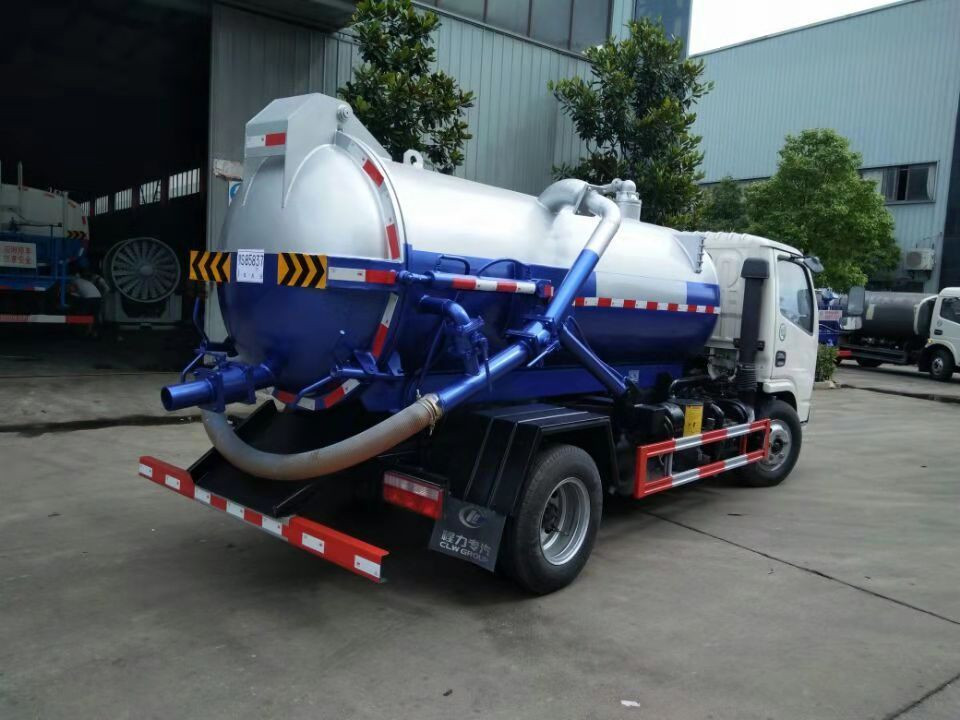 上裝配置:取力器,傳動軸,真空吸污泵,壓力罐體,液壓部件,管網(wǎng)系統(tǒng),壓力表,視污窗、洗手裝置。罐體封頭一次壓鑄成型,罐體可后開,帶自卸功能。罐內(nèi)污物可通過后蓋直接傾倒。
