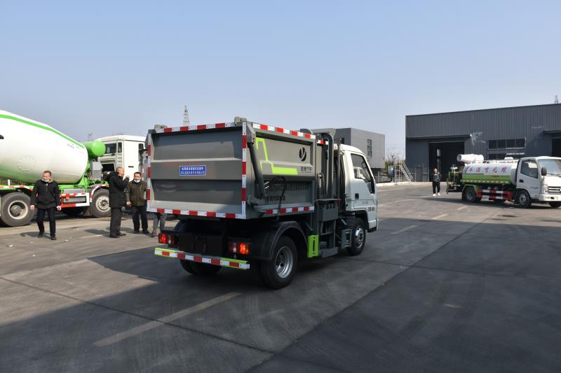 改裝容積3~4立方米,箱體采用Q235碳鋼,板材邊三底四,國(guó)內(nèi)知名油缸、多路閥,掛桶提升機(jī)構(gòu),外部操作,后蓋手動(dòng)開啟。