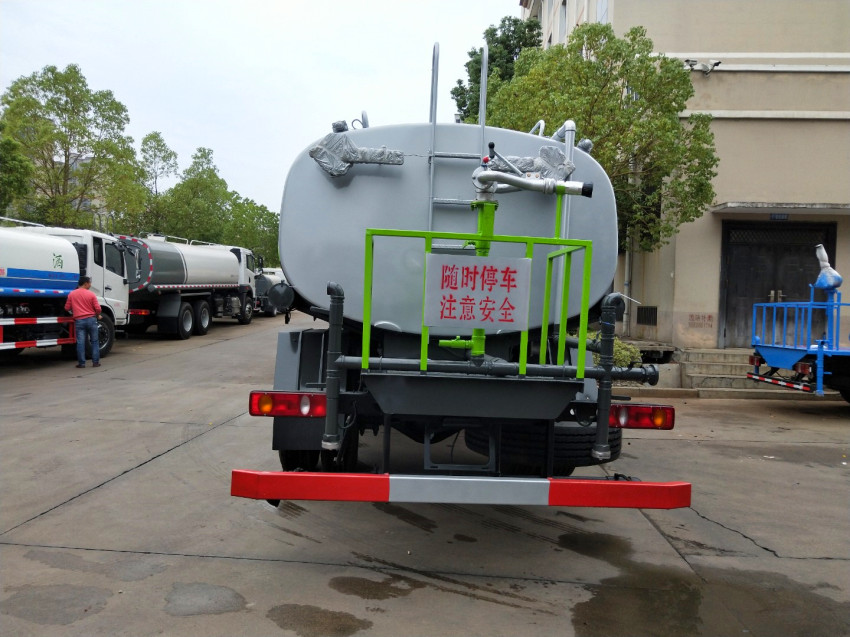 2、上裝配置:嚴格按國家公告生產,整車長/軸距/罐體外形尺寸(長×長軸×短軸)對應關系為(mm):7500/3950/3800×2400×1550(罐體尺寸:長×長軸×短軸×0.85=罐體實際容積12.015方,配備自吸自排大功率水泵,帶消防接口,罐體材料為優質武鋼碳鋼板,罐體厚度為5mm,灑水車專用部分由罐體、水泵、取力器、傳動軸、球閥、噴灑裝置等部件組成,選配萬向噴頭,多方位進出水接頭,電磁閥,電動灑水炮,噴霧機等。