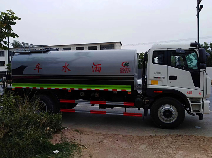 12噸水車功能:隨車裝有全新的灑水系統(tǒng)、配有自吸水泵、能在河流中抽水、車上裝有前沖、后灑、后配有工作平臺(tái)、平臺(tái)上裝有灑水
