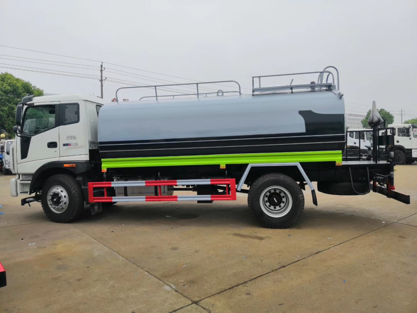 福田瑞沃12噸灑水車罐體采用機器壓板一次性成型技術,優質武鋼材質,配置大容量水箱,水罐采用有限元分析優化設計,儲水量更大,延長作業時間;配置獨立的高、低兩套水路系統,高低壓水泵選用品牌;采用自式級雙級離心泵,效率高,水源不方便時,可從河道、湖泊中水。全獨有烤漆工藝,防腐除銹,多層底漆、面漆噴涂。 功能齊全,灌溉、噴灑、道路養護,噴霧降塵、高炮噴射等,采用優質水泵,合理設計水路管道,氣控取力器,作業能力強;加大罐體設計,可以裝作12方水,提高了車輛的使用效率