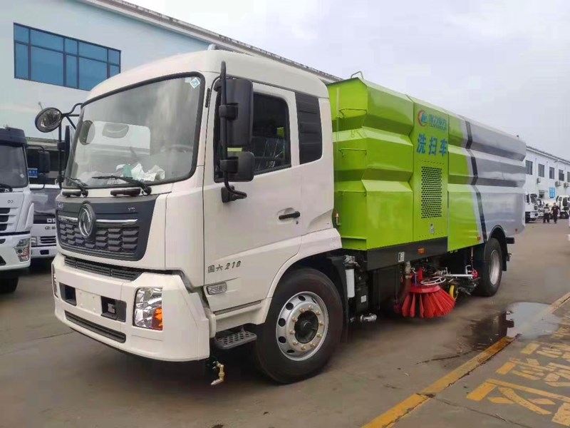 不上牌掃地車哪里有賣東風天錦洗掃車帶洗掃車采用“中置兩立掃 中置寬吸嘴(內置高壓噴桿) 中置高壓側噴桿”的作業裝置布置,副發動機170馬力,三洋馬達,德國原裝進口高壓水泵(前沖/側噴/中噴/后噴霧/側沖洗車水/垃圾箱自潔裝置),萬向高壓路緣清洗,低壓泵前沖,不銹鋼水箱,垃圾箱,不銹鋼高壓管路,倒車及洗掃狀態室內器,18米高壓沖洗卷盤,較大清掃寬度3.5米,高壓沖洗高度≥21米。具有路面清掃、路面洗刷、高壓清洗、路緣石洗刷、垃圾收集、污水回收、高壓噴霧和道路隔離墻清洗等多種作業功能。東風天錦洗掃車采用中置雙吸口超寬吸嘴,吸口直徑達180mm。其內置長排高壓水噴桿離地間隙小、水流沖擊力大,能直接將污水送至吸口,作業少,污水吸凈率高。并可根據路面污水情況,長排噴嘴對路面的沖洗角度,使清洗效果更佳。掃路車廠家直銷