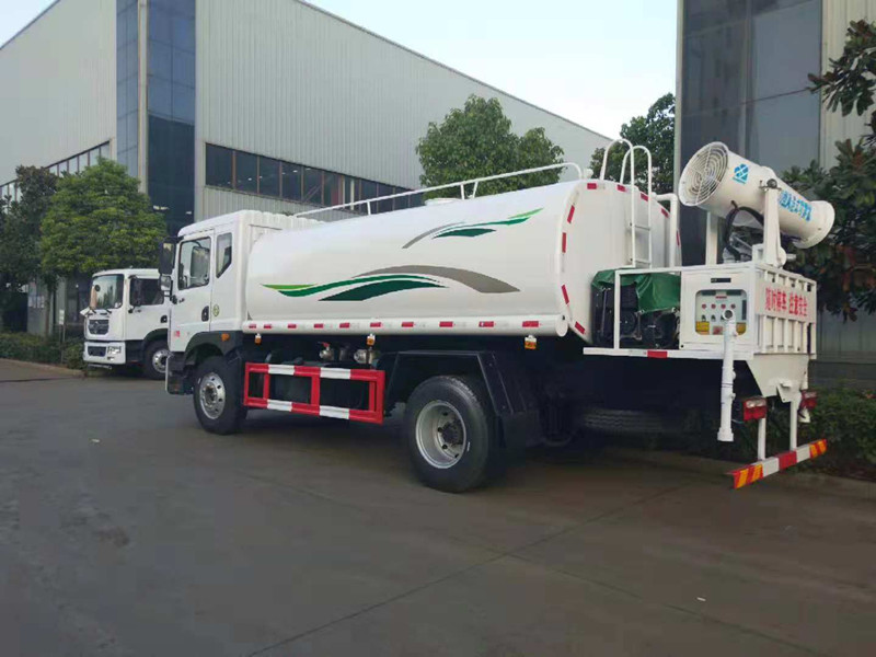 抑塵車吸程≧7米,灑水寬度≧14-16米,射程≧25-40米,引水時間<5min,流量60m3/h。前沖(噴)、后灑、帶側噴(花灑)、帶后工作平臺、平臺上安裝綠化灑水高炮(炮噴射形狀可調節:直沖、大雨、中雨、毛毛雨、霧狀、可連續調節,360°旋轉),配消防接口,自流閥,濾網,帶自吸自排功能。配備大功率專用灑水泵,泵可自吸自排,安裝過濾網,帶消防接口,可通過消防栓進水,帶自流閥,此車尾部加裝大功率農藥噴灑炮,噴灑狀態霧狀,有效射程15-45米,外部平臺帶獨立的機組。