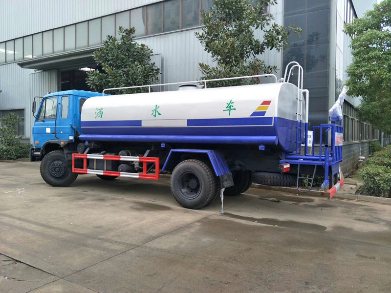 灑水車介紹及性能特點:1.功能介紹:前沖(噴)后灑、帶側噴、后置工作平臺、平臺上安裝綠化灑水高壓炮(炮形狀可調:直沖狀、大雨、中雨、毛毛雨,可連續調節,理射程可達28米) ,配備的“程力威”牌大功率灑水泵,帶消防接頭,帶自流閥,帶自能,帶濾網。2.產品概述:該車型為東風公國五 排放。灑水車部分由罐體、水泵、取力器、傳動軸、球閥、噴灑裝置等部件組成。采用定型產品,具有性能、工作可靠、通用適配等特點。灑水車罐體結構為橢圓形或方圓形,采用武鋼優質碳鋼制作,的對焊接工藝,罐設防蕩防波隔板,下端有通孔,罐體成型后高壓氣體試漏檢測,使罐體具有強度高、重心穩、車輛運載平穩等特點。