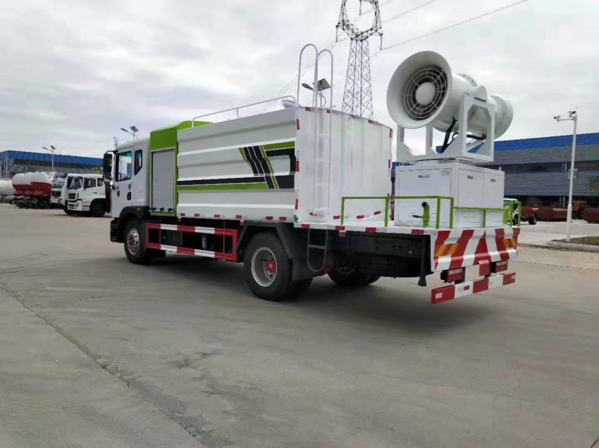 灑水車吸程≧7米,灑水寬度≧14-16米,射程≧25-40米,引水時間<5min,流量60m3/h。前沖(噴)、后灑、帶側噴(花灑)、帶后工作平臺、平臺上安裝綠化灑水高炮(炮噴射形狀可調節:直沖、大雨、中雨、毛毛雨、霧狀、可連續調節,360°旋轉),配消防接口,自流閥,濾網,帶自吸自排功能。配備大功率專用灑水泵,泵可自吸自排,安裝過濾網,帶消防接口,可通過消防栓進水,帶自流閥,此車尾部加裝大功率農藥噴灑炮,