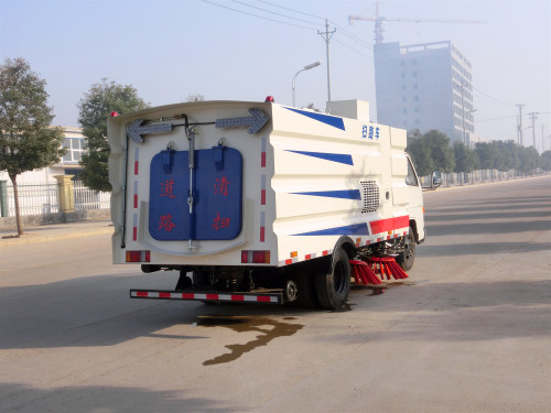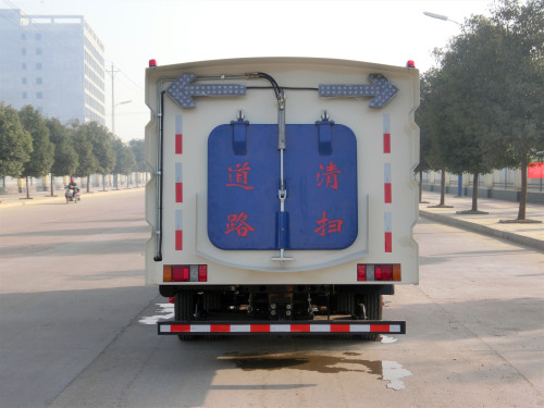 清掃方式:  采用4掃盤與吸盤混合的方式收集垃圾,洗掃能力卓越,兩側掃把可同時工作,也可單側獨立工作。濕式除塵、電液控制,液壓傾翻卸料的作業方式對路面進行清掃作業。清掃結構簡潔可靠,帶避讓防撞功能.
