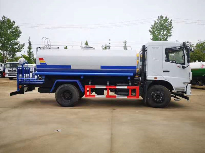 東風12噸灑水車具體配置:東風灑水車原廠底盤,云內170匹馬力國六發動機,法斯特6檔變速箱,空調,ABS,專用部分。帶前沖、后灑、側噴、后工作平臺、尾部帶綠化炮,
