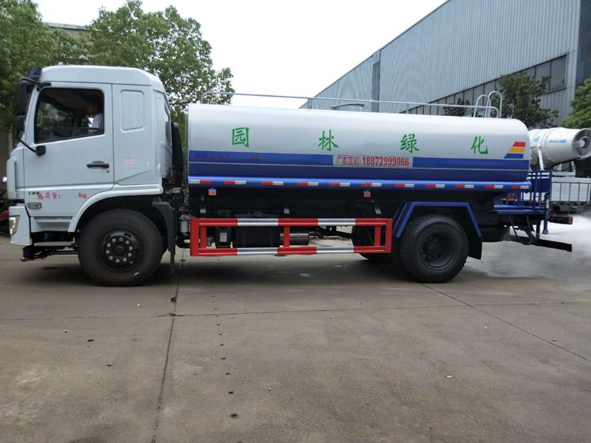 東風15噸灑水車性能簡介:吸程≧7米,灑水寬度≧14-16米,射程≧25-40米,引水時間<5min,流量60m3/h。前沖(噴)、后灑、帶側噴(花灑)、帶后工作平臺、平臺上安裝綠化灑水高炮(炮噴射形狀可調節:直沖、大雨、中雨、毛毛雨、霧狀、可連續調節,360°旋轉),配消防接口,自流閥,濾網,帶自吸自排功能。