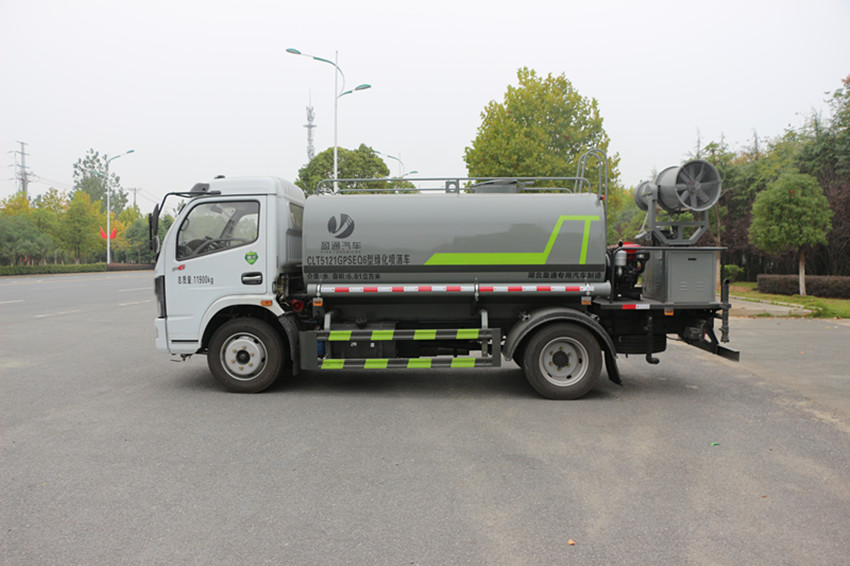 抑塵車罐體用4MM碳鋼板制作,罐內隔板具有防波作用,以減低汽車行駛時罐體液體的沖擊。整車帶一個專用灑水泵(垂直*大吸程9米),灑水寬度14米,射程28米。多功能灑水車配備2個前沖(噴)(能將路面泥巴、塵土、垃圾沖干凈);2個后灑(能均勻地將水灑在路面,一次灑水寬度14米)、2個側噴(花灑)(能均勻地將路旁綠化帶澆灌)、帶1個后工作平臺,平臺上安裝1個綠化灑水高炮(灑水炮可旋轉,可連續調成直沖狀、大雨、小雨、毛毛雨,霧狀可調節沖洗高大樹木)。帶1個消防接頭,帶1個自流閥,1個過濾裝置、人性化爬梯及側防護欄,安裝灑水音樂喇叭。