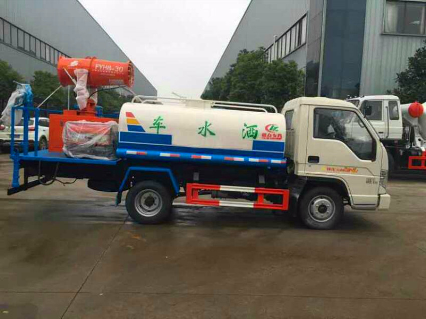 功能及說明:灑水車前裝有鴨嘴形噴嘴或圓錐形沖嘴,后面裝有圓柱形灑水噴嘴或蓮蓬頭噴嘴,后部有工作平臺,裝配有水炮。后部還可裝8個噴嘴。