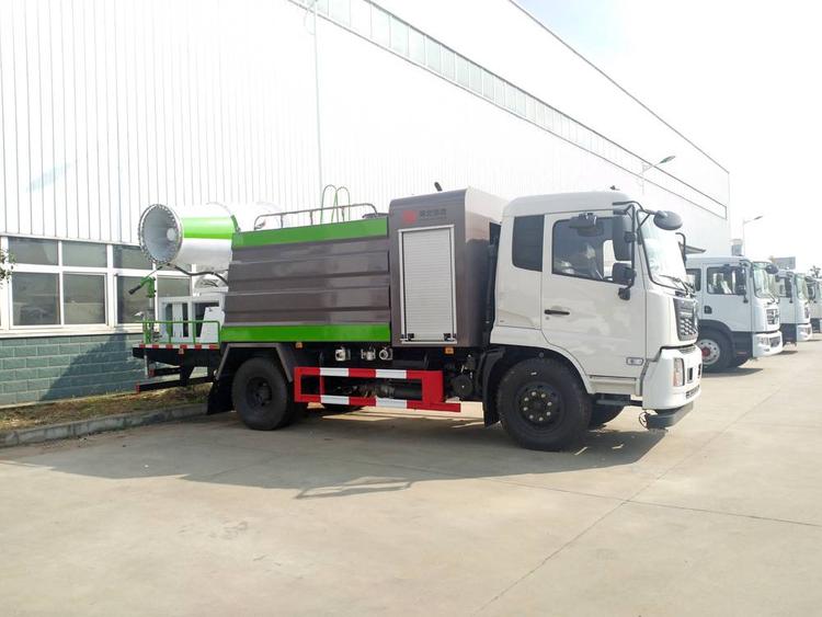 東風天錦抑塵車罐體容積:10立方 ,風送式霧炮車射程:80米,罐體鋼板為4mm碳鋼Q235材質,罐體隔板具有防波作用,以減輕汽車在行駛過程中液體的沖擊。整車嚴格按照公告尺寸及外觀生產。抑塵灑水車帶大功率灑水泵,泵可自吸自排。