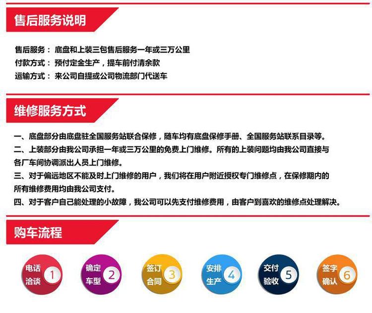 底盤配置:該車采用國六新款東風福瑞卡3800mm軸距底盤生產,搭載云內150馬力柴油發動機(可選用朝柴170馬力或云內170馬力),8.25鋼絲胎,萬里揚6檔變速箱,原廠冷暖空調,發動機型號不同底盤配置略有差異,實際請以購車合同為準!