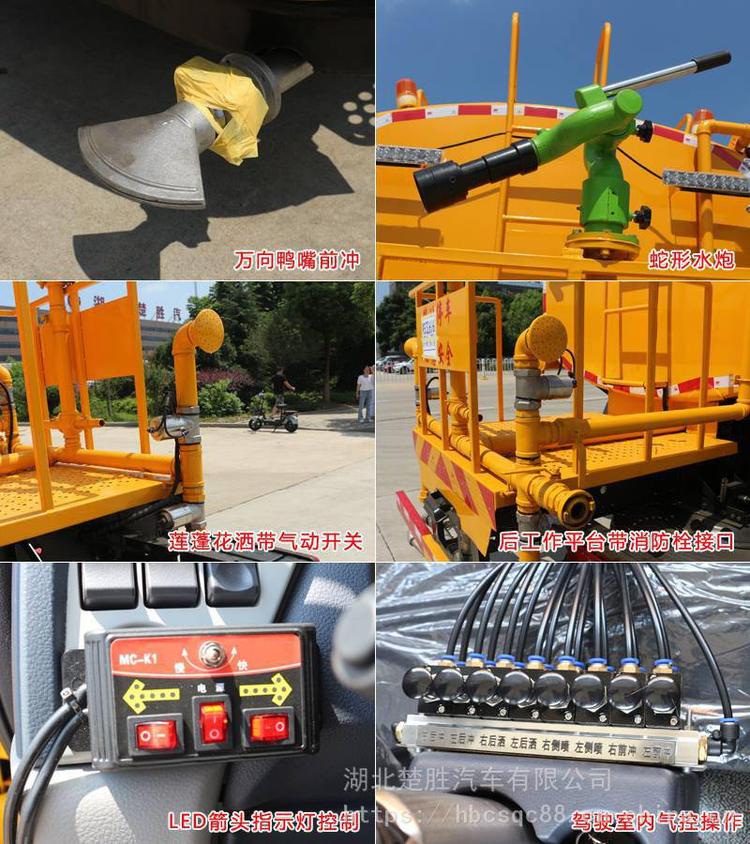 6、弧形噴霧架(選裝),帶10-12個噴霧嘴,噴出的水霧像孔雀開屏一樣,在夏季能為空氣增濕降溫,且水霧細(xì)密,落在路面不易產(chǎn)生污水帶;