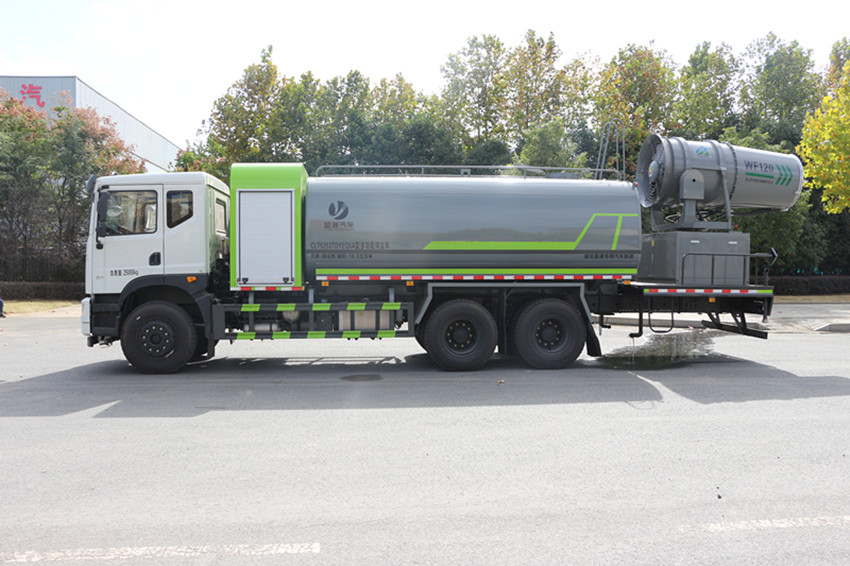 性能簡介:吸程≧7米,灑水寬度≧14-16米,射程≧25-40米,引水時間<5min,流量60m3/h。前沖(噴)、后灑、帶側噴(花灑)、帶后工作平臺、平臺上安裝綠化灑水高炮(炮噴射形狀可調節:直沖、大雨、中雨、毛毛雨、霧狀、可連續調節,360°旋轉),配消防接口,自流閥,濾網,帶自吸自排功能。安裝30-80米霧炮,霧炮可以遙控操作,可以手動操作,按霧炮大小配多大功率發電機