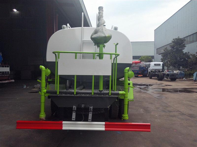 前沖(噴)后灑,帶側(cè)噴,罐體后帶工作平臺(tái),平臺(tái)上安裝綠化灑水炮,灑水炮可全方位旋轉(zhuǎn),可連續(xù)調(diào)成直沖狀、大雨、小雨、毛毛雨,帶安全護(hù)欄,配備大功率專用灑水泵,泵可自吸自排,帶消防接口,帶自流閥,帶灑水警示音樂和小警燈。