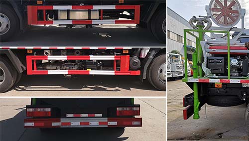 江淮牌抑塵車側(cè)防護及后下部防護均采用Q235A材質(zhì),均采用焊接連接,后下部防護尺寸:60×120(mm), 離地面高度440mm;2、ABS型號/廠家為:VIE ABS-Ⅱ/浙江萬安科技股份有限公司, CM4XL-4S/4M / 廣州瑞立科密汽車電子股份有限公司.3、專用裝置為抑塵霧炮,用于城市抑塵.4、隨底盤選裝駕駛室. |