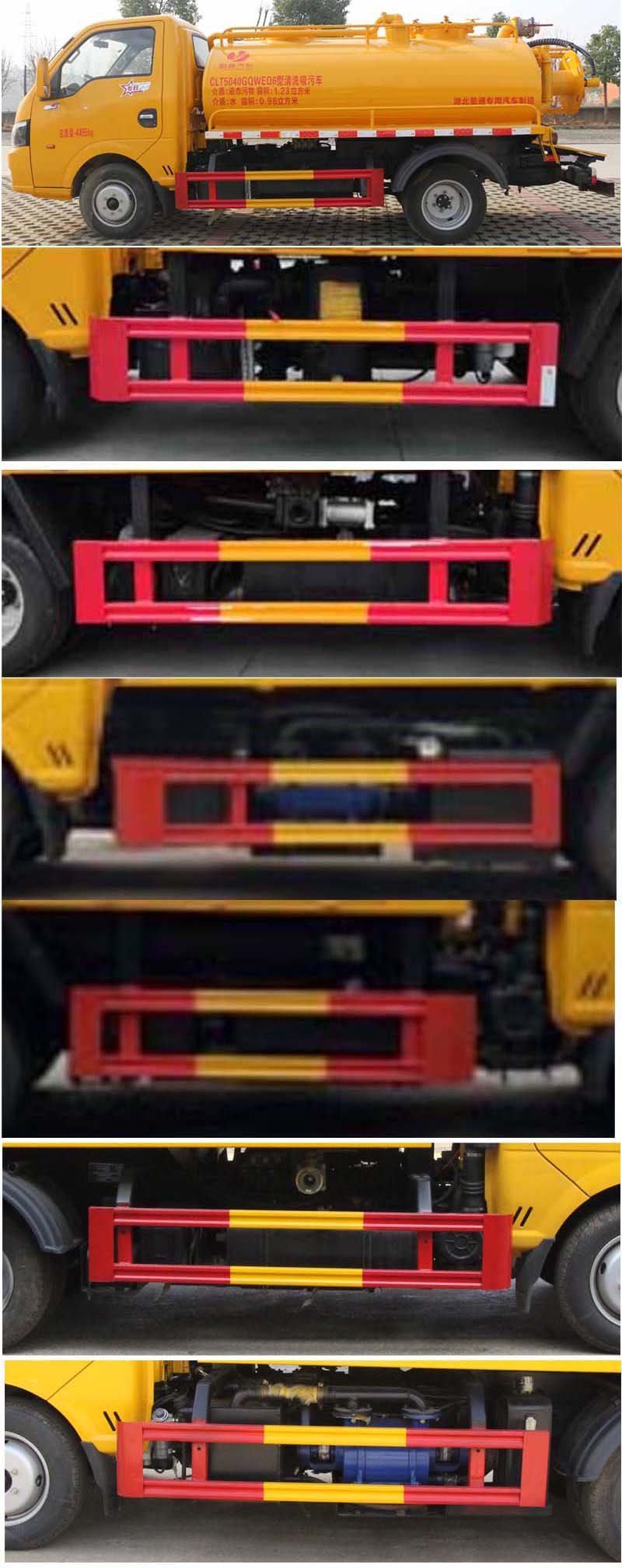 備注 | 該車(chē)用于下水道排污及疏通,專(zhuān)用裝置:罐體及清洗吸污裝置;罐體外形尺寸(長(zhǎng)×長(zhǎng)軸×短軸)(mm):2800×1550×1000,罐體前段為清水罐(長(zhǎng)1590mm,其中前端下部1100mm用于安裝高壓泵);后段為污水罐(長(zhǎng)1210mm);污水罐總?cè)萘?1.29立方米,污水罐有效容積:1.23立方米,介質(zhì):液態(tài)污物,密度800千克/立方米;清水罐總?cè)萘?1.03立方米,清水罐有效容積:0.98立方米,介質(zhì):水,密度1000千克/立方米,清水罐和污水罐為獨(dú)立罐體,清洗功能時(shí)用清水罐,吸污功能時(shí)用污水罐,污水罐和清水罐不可同時(shí)滿載,兩罐不能同時(shí)滿載使用;ABS型號(hào)/廠家:APG3550500A/浙江亞太機(jī)電股份有限公司;選裝ABS廠家及型號(hào):襄陽(yáng)東風(fēng)隆誠(chéng)機(jī)械有限責(zé)任公司/ABS/ASR-12V-4S/4M.側(cè)、后防護(hù)材料均為:Q235碳鋼,連接方式均為:螺栓連接,后部防護(hù)截面尺寸(mm):100×50,后部防護(hù)離地高度(mm):360.僅采用底盤(pán)2800mm軸距改裝.選裝油箱及電瓶位置。隨底盤(pán)選裝駕駛室。 | ||