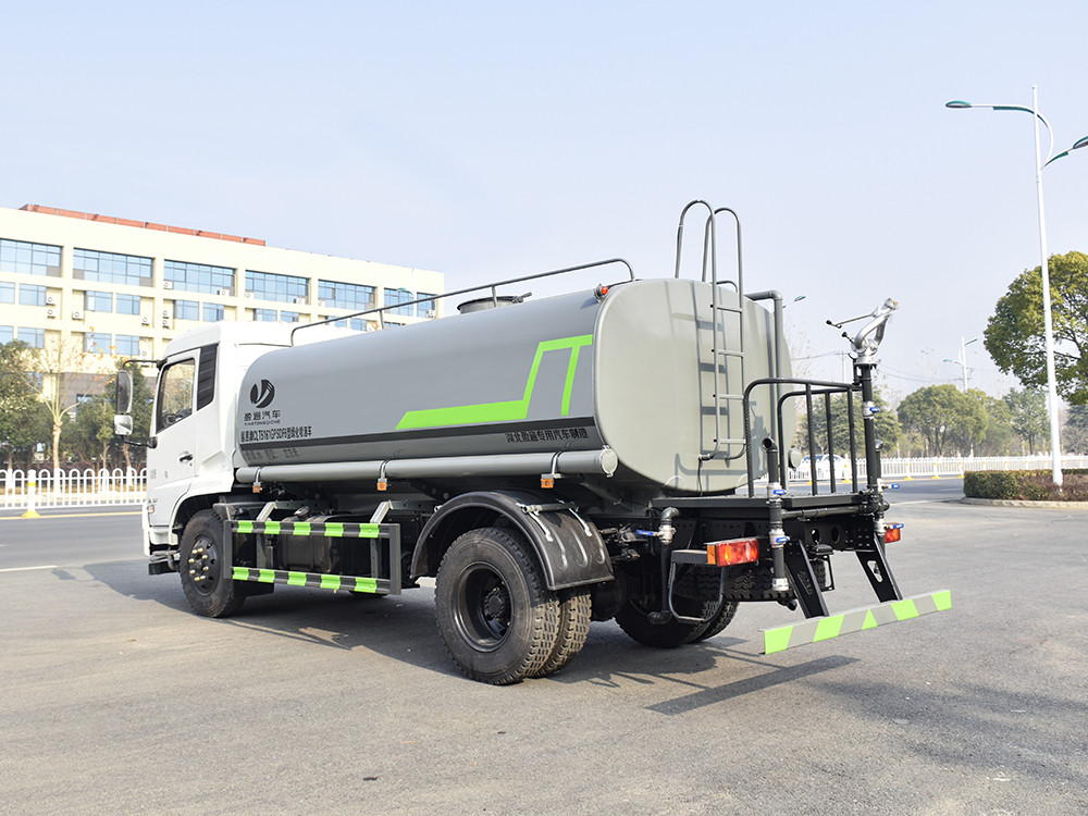 灑水車產品標配前噴(鴨嘴)、后沖、后灑、側噴、后置式工作 平臺,平臺上配置綠化水炮(可 360°旋轉,既可以調成柱狀,也可 以調成霧狀,更可以調成直沖狀、大雨、中雨、小雨、毛毛雨),配 備優質大功率專用灑水泵(可自吸自排,可從河里或池塘抽水到罐體), 取力器,雜物過濾網,消防接口,自流球閥系統、取力器、球閥、濾網 均為國家標準產品,主管道加粗,法蘭墊、法蘭盤加厚,大通徑球閥。 整體具備性能優良安全可靠、效率高、流量大、維修方便等特點