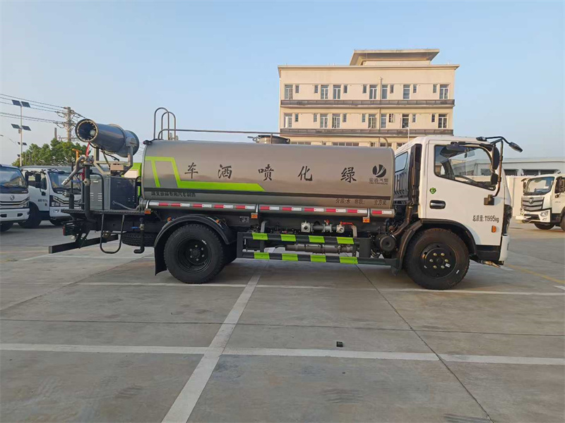 我公司產(chǎn)品標(biāo)配前噴(鴨嘴)、后沖、后灑、側(cè)噴、后置式工作平臺(tái),平臺(tái)上配置綠化水炮(可 360°旋轉(zhuǎn),既可以調(diào)成柱狀,也可以調(diào)成霧狀,更可以調(diào)成直沖狀、大雨、中雨、小雨、毛毛雨),配備優(yōu)質(zhì)大功率專用灑水泵(可自吸自排,可從河里或池塘抽水到罐體),取力器,雜物過(guò)濾網(wǎng),消防接口,自流球閥系統(tǒng)、取力器、球閥、濾網(wǎng)均為國(guó)家標(biāo)準(zhǔn)產(chǎn)品,主管道加粗,法蘭墊、法蘭盤加厚,大通徑球閥。整體具備性能優(yōu)良安全可靠、效率高、流量大、維修方便等特點(diǎn)。 二.產(chǎn)品配置