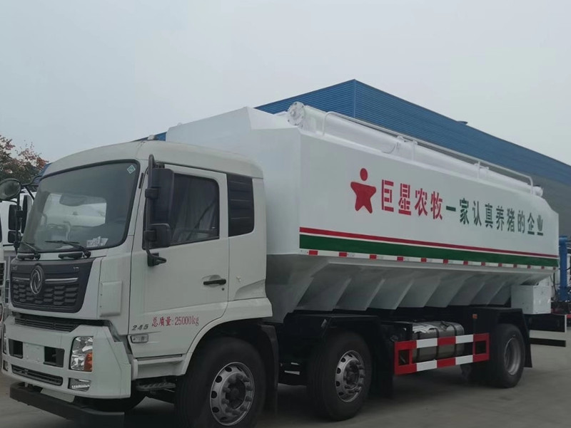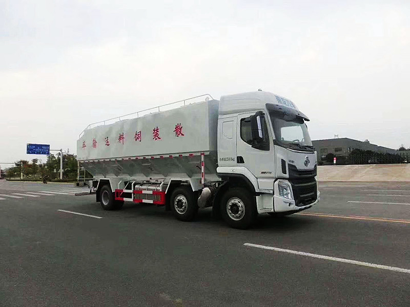 東風(fēng)柳汽乘龍28方單橋散裝飼料運輸車,28立方14噸,玉柴6缸200馬力發(fā)動機,超強爆發(fā)力,法士特8檔變速箱帶高低檔,10.00鋼絲胎!
