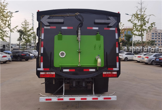 洗掃車改裝部分具有路面清洗、路面清掃、路緣清洗、路緣和路緣石立面洗刷、低壓沖洗、噴霧除塵等多功能;選擇“全洗掃”模式清洗廣場和路面,清洗效率高效果好,洗凈率達90%以上,選擇“左洗掃”或“右洗掃”模式清洗路面和路緣、洗刷路緣石立面;需要進行路面清掃或路面保潔作業時,可選擇掃路模式;需要噴霧除塵時,可開啟噴霧裝置,進行噴霧除塵作業;還可以像灑水車一樣對路面進行低壓沖洗作業。