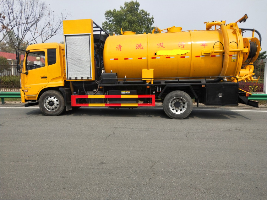 吸污車專用部分由取力器、傳動軸、真空吸污泵、壓力罐體、液壓部分,管網系統、真空壓力表、視糞窗、洗手裝置等組成,隨車配置大功率真空吸污泵和優質液壓系統,罐體封頭一次壓鑄成型、罐體可后開、雙頂自卸。罐內污物可通過后蓋直接傾倒,具有真空度高(比吸糞車的吸力更大)、噸位大、效率高、用途更廣泛的特點