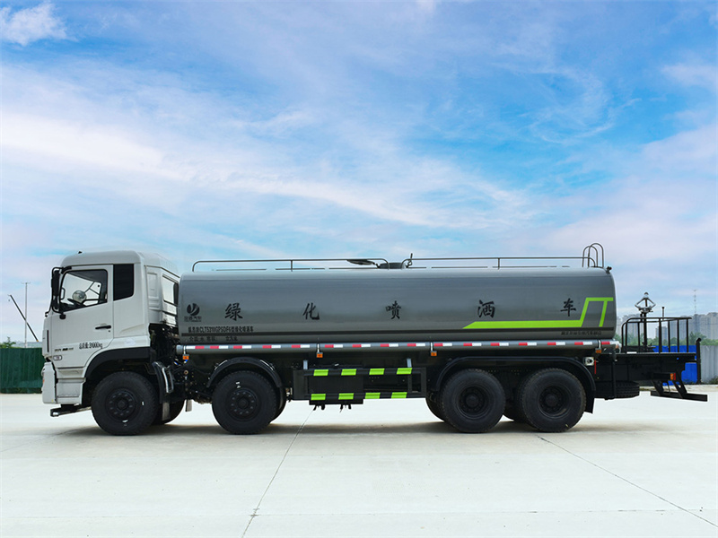 灑水車又稱為噴灑車、多功能灑水車、園林綠化灑水車。灑水車 適合于各種路面沖洗,樹木、綠化帶、草坪綠化,道路、廠礦企業施工 建設,高空建筑沖洗。灑水車也可以作為運水車使用,最常見的車型 有環衛灑水車、多功能灑水車、綠化灑水車幾大類。 我公司產品標配前噴(鴨嘴)、后沖、后灑、側噴、后置式工作 平臺,平臺上配置綠化水炮(可 360°旋轉,既可以調成柱狀,也可 以調成霧狀,更可以調成直沖狀、大雨、中雨、小雨、毛毛雨),配 備優質大功率專用灑水泵(可自吸自排,可從河里或池塘抽水到罐體), 取力器,雜物過濾網,消防接口,自流球閥系統、取力器、球閥、濾網 均為國家標準產品,主管道加粗,法蘭墊、法蘭盤加厚,大通徑球閥。 整體具備性能優良安全可靠、效率高、流量大、維修方便等特點