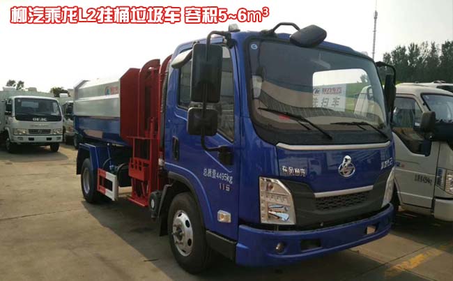東風柳汽L2掛桶垃圾車,L25單排駕駛室,配江西五十鈴115馬力發動機,江齒5檔變速箱,Ф265離合,軸距3360,5T后橋/5.571,190(5)車架,120L塑料油箱,7.00R16,固定式駕駛室懸置、扭桿式翻轉、電動玻璃升降器、遙控鑰匙+中控鎖(四鎖合一)、液晶儀表、空調、斷氣剎、ABS。