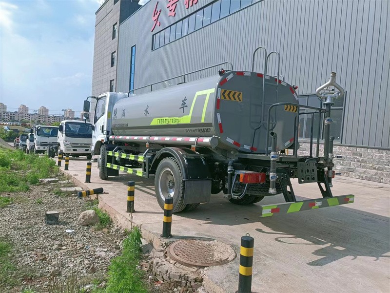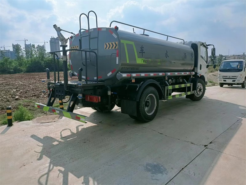 該車主要用于城鄉園林綠化,路面噴灑,除塵和降溫;主要裝置為水罐及噴灑裝置;隨底盤選裝駕駛室;罐體總容量:7.58立方米;罐體有效容積:7.22立方米;罐體外形尺寸(長×長軸×短軸)(mm):4200×2000×1310,4000×2000×1320;ABS型號/廠家:ABS型號及生產廠家為:3631010-C2000/東科克諾爾商用車制動系統(十堰)有限公司,J ABS/焦作博瑞克控制技術有限公司;側、后防護材料均為:Q235碳鋼,連接方式均為:螺栓連接,后部防護截面尺寸(mm):120×50,后部防護離地高度(mm):450.選裝噴灑裝置樣式,選裝后部箭頭燈,選裝后部弧形噴灑裝置,選裝水炮支架位置,選裝后部樣式,選裝自動球閥安裝位置,選裝自動炮裝置樣式,前伸500mm,整車長度為7700(mm).選裝罐體頂部高位花灑裝置及方形罐口,選裝工具箱裝置.后部作業燈僅在作業時開啟,車輛行駛過程中不可開啟.