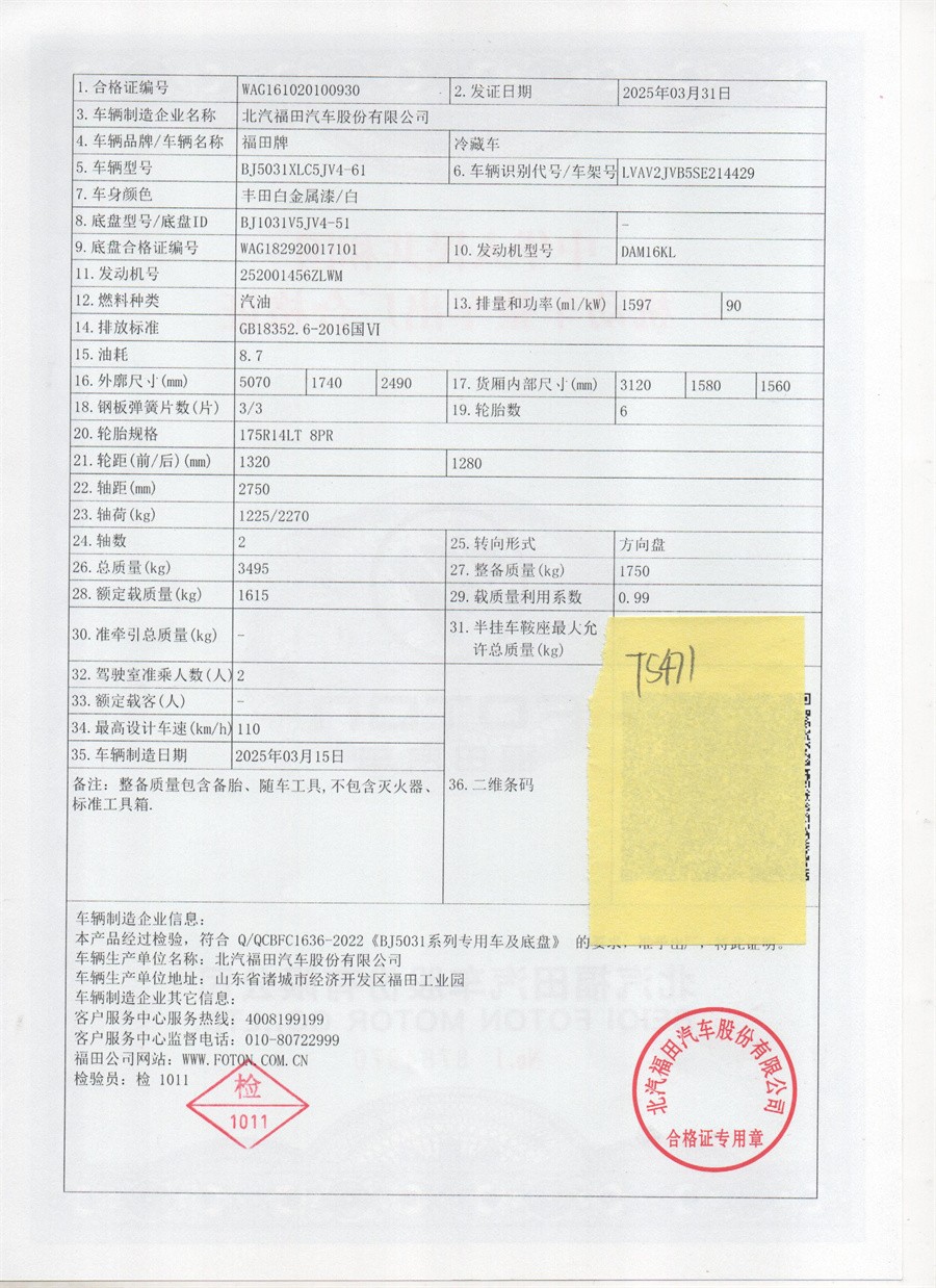廂體采用內(nèi)外玻璃鋼板材制作,中間填充8cm 厚高密度保溫材料,底板選用加厚型防滑花紋鋁板,鋁合金型材包邊,不銹鋼門鎖件,后雙開門,帶單側(cè)開門,匹配零下15度制冷機(jī)組。其余按冷藏車標(biāo)配制作。提供機(jī)動(dòng)車上戶手續(xù)(機(jī)動(dòng)車合格證、上戶發(fā)票、車輛保修手冊(cè)、隨車工具)。