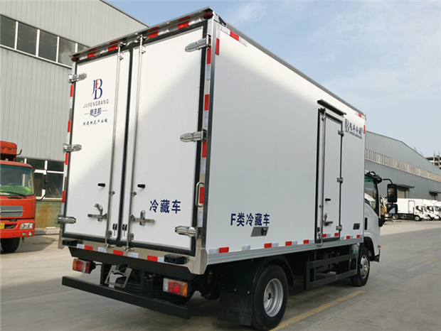 國六慶鈴KV100藍牌冷藏車廂體配置為:采用斷橋隔熱工藝,整體框架結(jié)構(gòu)制作,廂體內(nèi)、外壁材料為玻璃鋼板,采用高密度保溫層,廂板內(nèi)帶有骨架,廂體厚度80mm,門框,門飾件、包角全部使用不銹鋼材質(zhì)。最新款鋁合金包邊型材,廂體內(nèi)采用LED照明燈及廂體示寬燈;門框密封條為橡膠材質(zhì),后門梁帶加厚防撞塊,加厚型不銹鋼鉸鏈及鎖件。車體副梁采用510L高強度鋼制作,底板標配為塑鋼花紋板,可選鋁花紋板或者不銹鋼花紋板,車廂后門帶一個上車扶手,其余標配;