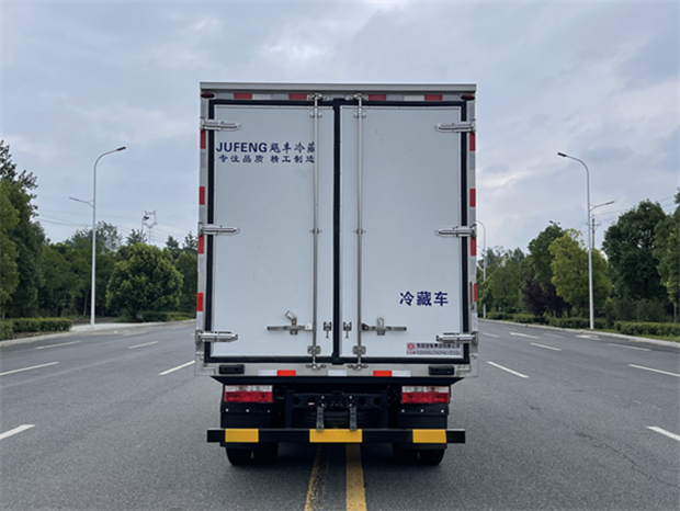 東風(fēng)新能源冷藏車廂體配置為:采用斷橋隔熱工藝,整體框架結(jié)構(gòu)制作,廂體內(nèi)、外壁材料為玻璃鋼板,采用高密度保溫層,廂板內(nèi)帶有骨架,廂體厚度80mm,門(mén)框,門(mén)飾件、包角全部使用不銹鋼材質(zhì)。最新款鋁合金包邊型材,廂體內(nèi)采用LED照明燈及廂體示寬燈;門(mén)框密封條為橡膠材質(zhì),后門(mén)梁帶加厚防撞塊,加厚型不銹鋼鉸鏈及鎖件。車體副梁采用510L高強(qiáng)度鋼制作,底板為鋁花紋板,車廂后門(mén)帶一個(gè)上車扶手,其余標(biāo)配;
