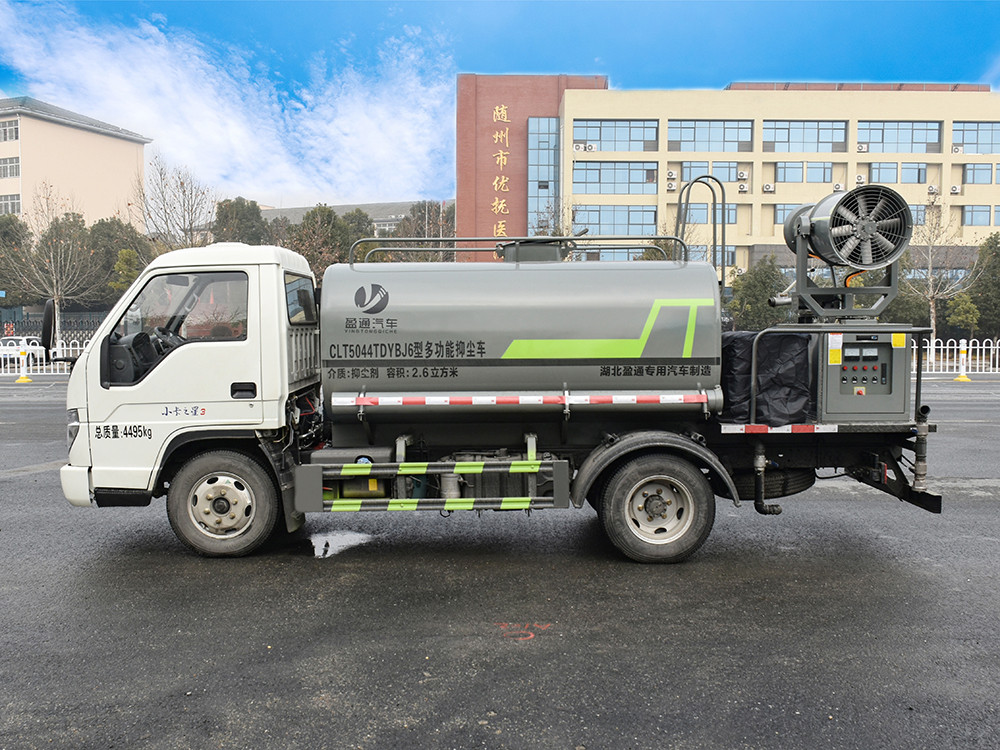 縱昂牌 CLT5044TDYBJ6A 型多功能抑塵車標(biāo)配后對沖、后灑、側(cè) 噴、后置式工作平臺(tái),平臺(tái)上配置綠化水炮可 360°旋轉(zhuǎn),既可以調(diào)成柱狀, 也可以調(diào)成霧狀),配備優(yōu)質(zhì)大功率專用灑水泵,可自吸自排,可從河里或池 塘抽水到罐體,取力器,雜物過濾網(wǎng),消防接口,自流球閥系統(tǒng)、取力器、球 閥、濾網(wǎng)均為國家標(biāo)準(zhǔn)產(chǎn)品,主管道加粗,法蘭墊、法蘭盤加厚,大通徑球閥。 整體具備性能優(yōu)良安全可靠、效率高、流量大、維修方便等特點(diǎn)。