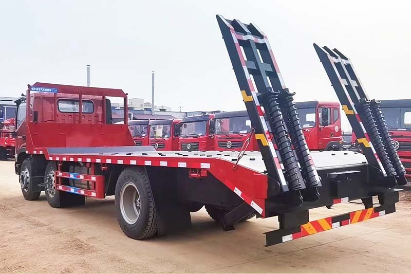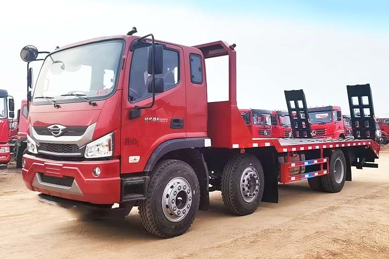 福田前四后四平板拖車,國六排放標(biāo)準(zhǔn),采用新款瑞沃ES5駕駛室,標(biāo)配中控鎖電動門窗、原廠空調(diào)、氣囊座椅、定速巡航、ABS等,可定制液壓雙節(jié)折疊爬梯,爬梯長度4米以上,運(yùn)輸叉車等機(jī)械設(shè)備