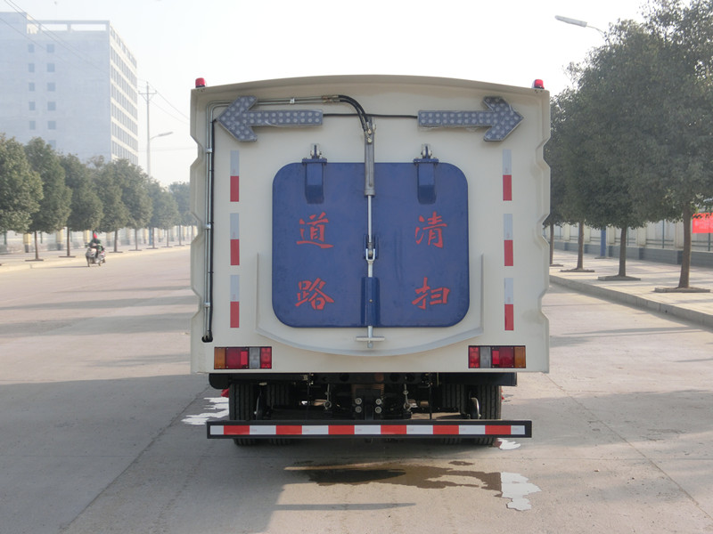 該掃路車采江鈴國五二類底盤改裝,加裝副發(fā)動機(jī)、風(fēng)機(jī)、清水箱、垃圾箱、左右立掃、后置吸盤,掃盤降塵系統(tǒng),液壓系統(tǒng)、專用裝置電控系統(tǒng)和副車架等改裝而成(可加裝前沖后灑)