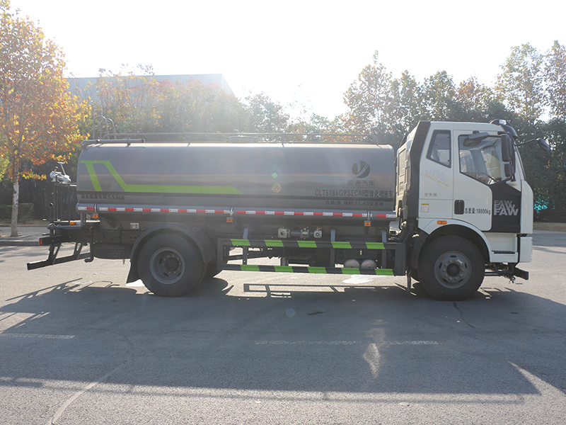 標(biāo)準(zhǔn)配置灑水車主要裝備有:前沖(沖洗公路路面)、后灑(公路路面養(yǎng)護(hù))、側(cè)噴、高位側(cè)花灑(路邊綠化帶優(yōu)化);后工作平臺(tái)高壓水炮,可調(diào)節(jié)成柱狀,射程≥28m;也可調(diào)節(jié)成霧狀,射程≥30米,水泵自吸高度:≤7m,灑水寬度:≥15m。側(cè)防護(hù)網(wǎng),自流閥,消防接頭。灑水車水泵為常壓水泵,功能可以抽水、排水。另外根據(jù)用戶要求,可加消防泵、噴霧機(jī)、農(nóng)藥卷盤、農(nóng)藥柱塞泵。罐內(nèi)可以做防腐防銹、電磁閥氣動(dòng)閥自動(dòng)放水等****,以滿足不同用戶需求。