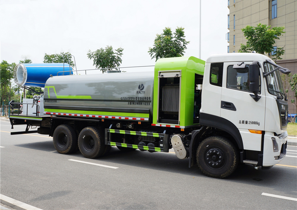 專用功能配置:罐體實際容積約為17立方米,(罐體有效參數14立方米、額定載質量10620kg、)采用武鋼優質碳鋼板卷壓成型。配備專用灑水泵,自吸自排,前噴后灑、側噴、后工作平臺及灑水高壓炮。灑水泵自吸高度為6米左右,整車灑水寬度14米左右,后工作平臺水炮可調成:直沖狀、大雨、中雨、小雨、毛毛雨,有效射程≥28米,整車帶接頭、水位計,自流閥。后工作平臺主管路帶1寸澆花接口,附送2根3米水管,1個爬梯,兩側及后保險杠。 |