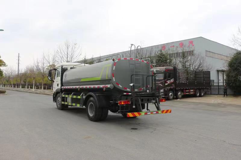 該車主要用于城鄉園林綠化,路面噴灑,除塵和降溫;主要裝置為水罐及噴灑裝置;罐體有效容積:11.34立方米;罐體外形尺寸(長×長軸×短軸)(mm):5200×2300×1390;隨底盤選裝駕駛室;側、后防護材料均為:Q235碳鋼,連接方式均為:螺栓連接,后部防護截面尺寸(mm):120×50,后部防護離地高度(mm):460;ABS系統控制器生產企業/型號為威伯科(上海)管理有限公司/4460046300;選裝EBS,EBS系統控制器生產企業/型號為威伯科(上海)管理有限公司/EBS3。選裝限速裝置,最高車速(km/h)為80或89。