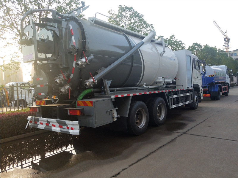 由于吸糞膠管始終浸沒于液面上,糞罐內(nèi)的空氣被抽吸后,因其得不到補(bǔ)充而越來越稀薄,致使罐內(nèi)壓力低于大氣壓力,糞液即在大氣壓力使用下,經(jīng)吸糞膠管進(jìn)入容罐。或者由于虹吸管接近罐底,空氣被不斷排入糞罐時(shí),因其沒有出路而被壓縮,致使罐內(nèi)壓力高于大氣壓力,糞液即在壓縮空氣的作用下,經(jīng)虹吸管,吸糞膠管排出罐外。吸污車主要用于清洗城市下水道,管道的沉積物,死角泥溝的疏通,也可用于清洗工業(yè)排液管道,壁面等,并可兼作灑水,運(yùn)水和沖公路用,緊急時(shí)可用于救火。