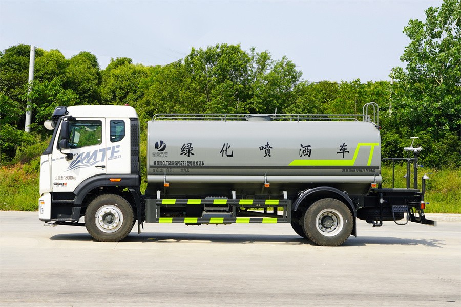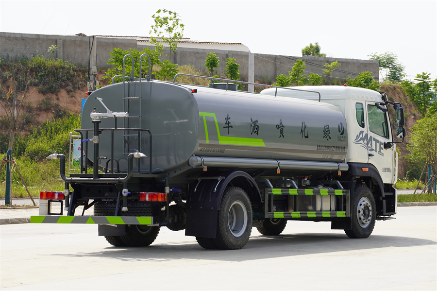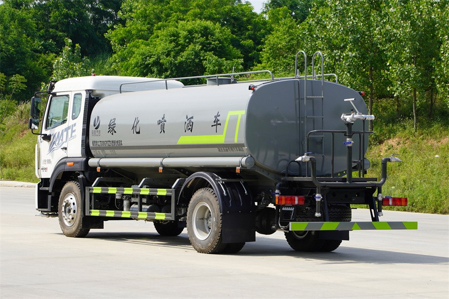 重汽15噸灑水車產(chǎn)品標(biāo)配前噴(鴨嘴)、后沖、后灑、側(cè)噴、后置式工作 平臺,平臺上配置綠化水炮(可 360°旋轉(zhuǎn),既可以調(diào)成柱狀,也可 以調(diào)成霧狀,更可以調(diào)成直沖狀、大雨、中雨、小雨、毛毛雨),配 備優(yōu)質(zhì)大功率專用灑水泵(可自吸自排,可從河里或池塘抽水到罐體), 取力器,雜物過濾網(wǎng),消防接口,自流球閥系統(tǒng)、取力器、球閥、濾網(wǎng) 均為國家標(biāo)準(zhǔn)產(chǎn)品,主管道加粗,法蘭墊、法蘭盤加厚,大通徑球閥。 整體具備性能優(yōu)良安全可靠、效率高、流量大、維修方便等特點