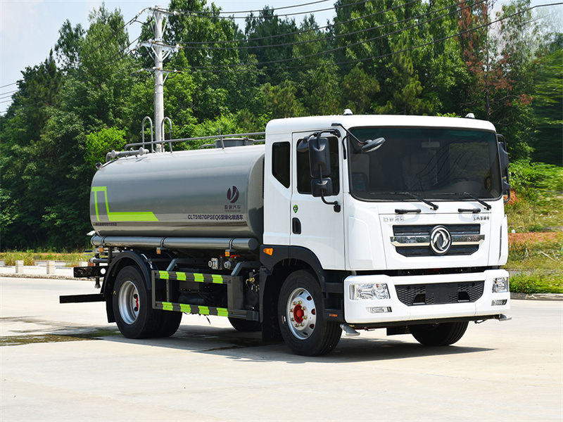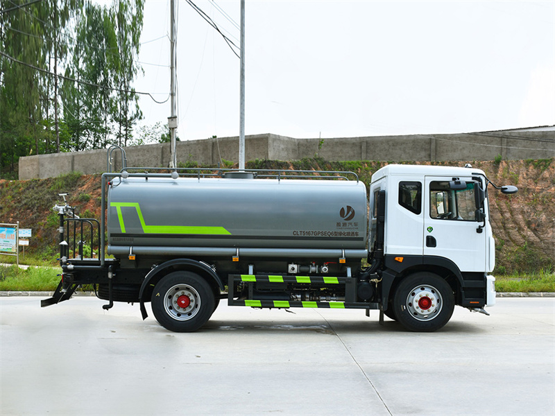 東風12噸灑水車產品標配前噴(鴨嘴)、后沖、后灑、側噴、后置式工作 平臺,平臺上配置綠化水炮(可 360°旋轉,既可以調成柱狀,也可 以調成霧狀,更可以調成直沖狀、大雨、中雨、小雨、毛毛雨),配 備優質大功率專用灑水泵(可自吸自排,可從河里或池塘抽水到罐體), 取力器,雜物過濾網,消防接口,自流球閥系統、取力器、球閥、濾網 均為國家標準產品,主管道加粗,法蘭墊、法蘭盤加厚,大通徑球閥。 整體具備性能優良安全可靠、效率高、流量大、維修方便等特點。