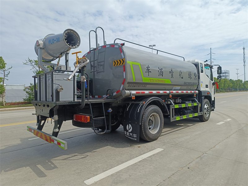 1.產品簡述:縱昂牌 CLT5168GPSBJ6A 型綠化噴灑車標配前噴(鴨嘴)、后對沖、 后灑、側噴、后置式工作平臺,平臺上配置綠化水炮(可 360°旋轉,既可以調 成柱狀,也可以調成霧狀),配備優質大功率專用灑水泵(可自吸自排,可從河 里或池塘抽水到罐體),取力器,雜物過濾網,消防接口,自流球閥系統、取力 器、球閥、濾網均為國家標準產品,主管道加粗,法蘭墊、法蘭盤加厚,大通徑 球閥。整體具備性能優良安全可靠、效率高、流量大、維修方便等特點