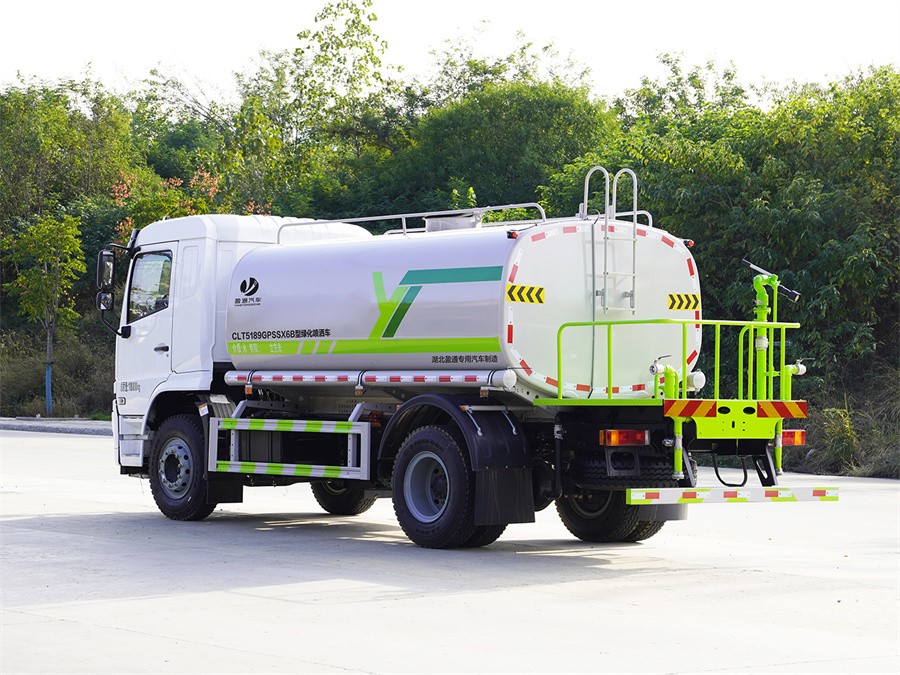 產品簡述:縱昂牌 CLT5189GPSSX6B 型綠化噴灑車 標配前噴(鴨嘴)、后對沖、 后灑、側噴、后置式工作平臺,平臺上配置綠化水炮(可 360°旋轉,既可以調 成柱狀,也可以調成霧狀),配備優質大功率專用灑水泵(可自吸自排,可從河 里或池塘抽水到罐體),取力器,雜物過濾網,消防接口,自流球閥系統、取力 器、球閥、濾網均為國家標準產品,主管道加粗,法蘭墊、法蘭盤加厚,大通徑 球閥。整體具備性能優良安全可靠、效率高、流量大、維修方便等特點
